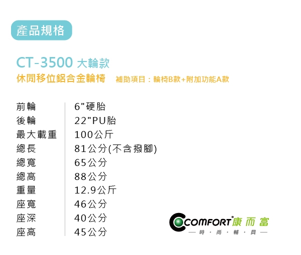 整理了GOOGLE上關於【I Care 艾品輔具】CT-3500 18大輪款/休閒移位鋁合金輪椅搜尋前幾名排序的資料來輔助!包含更進一步圖文資訊的介紹!點擊圖片或文字可以進到更詳細購物推薦網站~希望我整理的資料能對我大家JESSE有幫助。JESSE也請我幫忙收集該商品資料!網路購物EC是擋不住的趨勢,可以方便比價只要用功通常都能買到相對便宜的商品! |