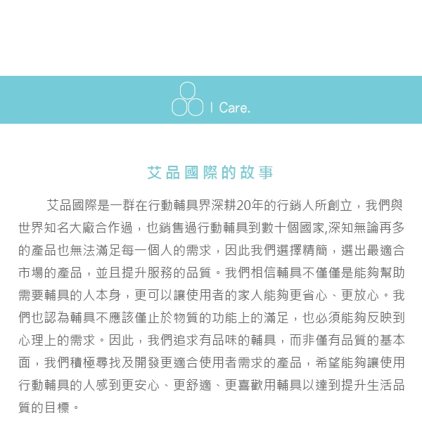 許可執照字號:北府中藥販字第623104D375號 商品規格 商品名稱 : CT-3500大輪款 品牌 : 艾品I Care 種類 : 輪椅 尺寸(長x寬x高)(cm) : 總長81(不含撥腳) x 總寬65 x 總高88 公分 材質 : 鋁合金材質 注意事項 : 消費者使用前應詳閱產品說明書 保存期限 : 有效期間(或保存期限):20年 (製造日期會因庫存批次而有所不同,請詳見產品包裝標示) 型號 : CT-3500大輪款 許可證字號 : 衛部醫器陸輸壹字第003687號 販售業者資料 : 艾品國際有限公司 最大載重 : 100公斤 製造日期 : 依產品外包裝標示 製造商名稱 : COMFORT ORTHOPEDIC CO.,LTD 製造商地址 : GUANHE ROAD, SITU TOWN, DANYANG CITY,CHINA 廣告許可字號 : 衛部器廣字第108004022號 諮詢專線 : (05)235-5596 醫療器材許可證品名 : "艾品兒"機械式輪椅(未滅菌) 醫療器材許可證核准字號 : 衛部醫器陸輸壹字第003687號 藥商名稱 : 艾品國際有限公司 藥商地址 : 嘉義市西區湖內里湖子內路600號1樓 藥商許可證號 : 嘉市藥販字第622202A248號 藥商諮詢專線 : (05)235-5596 產地 : 中國 體驗說明 使用方法說明 請參閱產品使用說明書 注意事項 許可證核准字號:衛部醫器陸輸壹字第003687號 藥商名稱:艾品國際有限公司 製造廠名稱:COMFORT ORTHOPEDIC CO.,LTD 製造廠地址:GUANHE ROAD, SITU TOWN, DANYANG CITY,CHINA 許可證字號:嘉市藥販字第622202A248號 公司名稱:艾品國際有限公司 地址:嘉義市西區湖內里湖子內路600號1樓 諮詢專線:(05)235-5596 客服Line ID:icare0410 服務時間:週一至週五 08:00~12:00,13:00~17:00 請參閱產品使用說明書 |