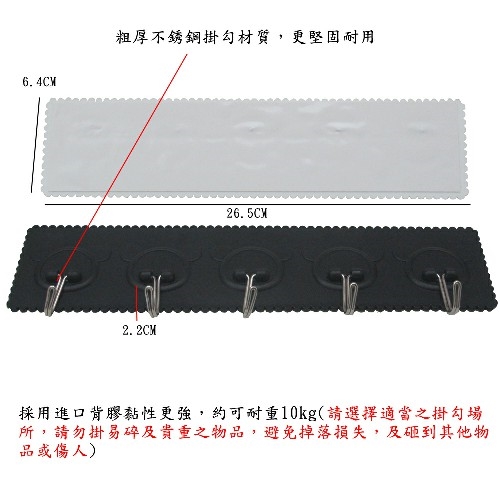 ■採用進口背膠黏性更強,約可耐重10kg ( 請選擇適當之掛勾場所,請勿掛易碎及貴重之物