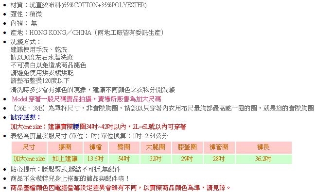 適穿腰圍:34吋~42吋以內,2L~6L號以內可穿著