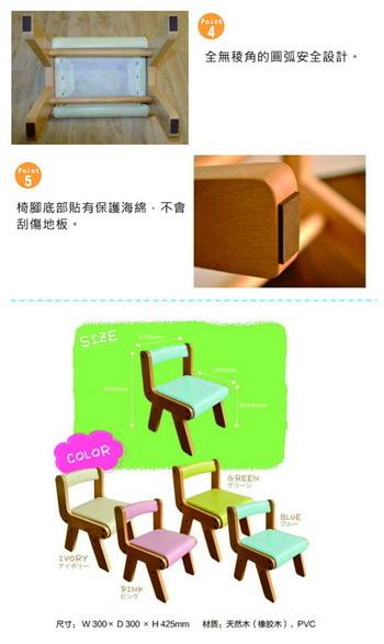 《C&B》na-KIDS兒童軟座靠背椅也有些網路上部落客的評價也值得我們參考.網路購物EC是擋不住的趨勢,可以方便比價只要用功通常都能買到相對便宜的商品!SAMANTHA也請我幫忙收集該商品資料!《C&B》na-KIDS兒童軟座靠背椅數量有限,售完為止!限量是殘酷的,不要猶豫入手要快~還有去各大拍賣網站RUTEN露天、YAHOO拍賣收集商品資料! 商品詳細介紹 日本知名家具家飾品牌《市場株式會社》所設計的超優質商品已經正式在台上市了,市場株式會社於1959年創立以來,深受日本消費者的支持,是一家擁有50多年歷史的傢俱設計與銷售公司,以優質室內家具的造型與用料,以及兒童健康成長為首要考慮要素所設計的系列兒童家具更是市場株式會社的主打商品,並於2010年以及2011年連續獲得日本GOOD DESIGN最佳設計獎,100%安心用料,100%日本設計,100%日本品管,絕對值得您信賴! Na-KIDS系列是市場株式會社在兒童家具裡面銷售最佳也是最經濟的系列,堅持讓兒童接觸到天然木材的自然觸感,最適合幼兒到小學低年級階段的兒童! 《na-KIDS》兒童軟座靠背椅,採用天然實木,觸感溫暖柔和,柔和的糖果色系和簡潔的設計加上圓弧渾厚無銳角的安全性 ,是本款商品熱銷的小秘密! 簡潔可愛造型搭配清晰天然的木紋,座面和靠背採用常使用於沙發的軟質PVC,柔軟舒適,而腳座底部有泡棉貼紙 ,能防止刮傷您的地板,是日本貼心家具的體現! 整體表面處理溫和不含有害物質,即使您的小寶貝不慎讓椅子髒污了,也能輕易用布沾水擦拭,防水耐髒最適合兒童使用!